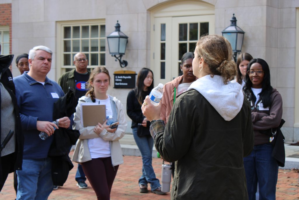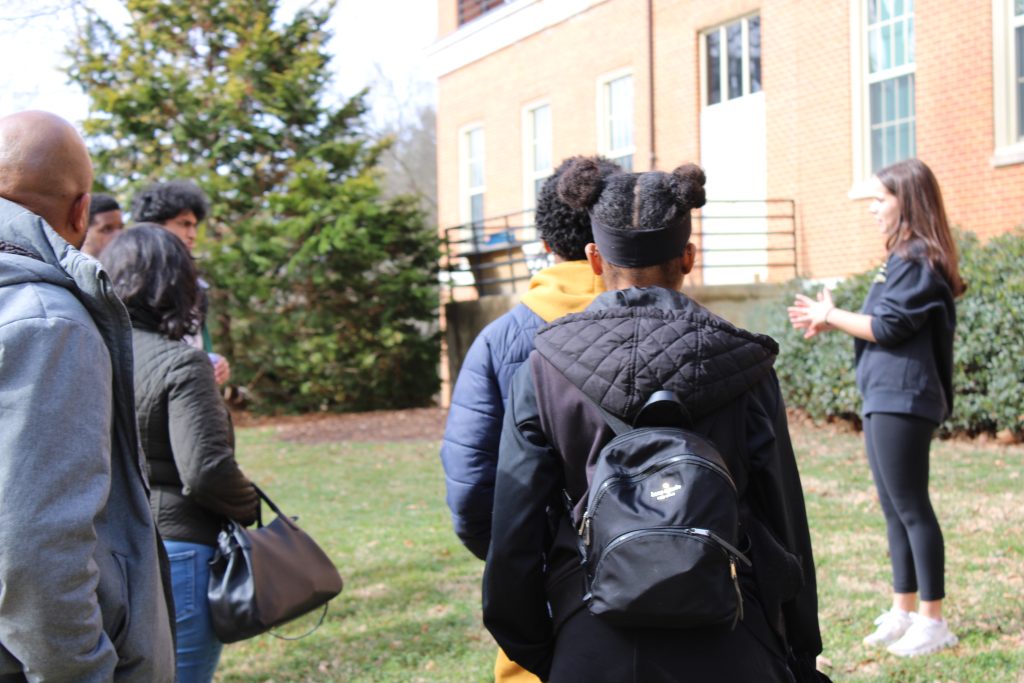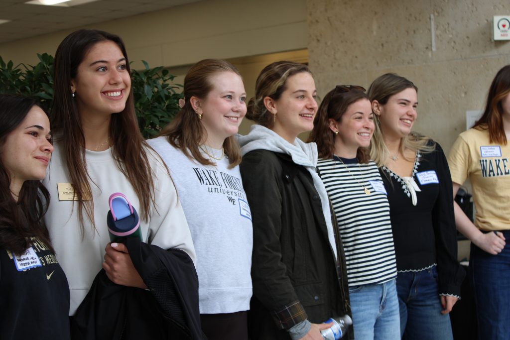 Even though the morning had started gray and rainy, the weather cleared up and the sun came out in time for the campus tour. Scholars and their families enjoyed lunch at the Pit, the Wake Forest dining hall, followed by a session on financial aid specifics and a campus involvement fair, where current Wake Forest students represented many clubs and groups, from the Student Union to OLAS (Organization of Latin American Students).