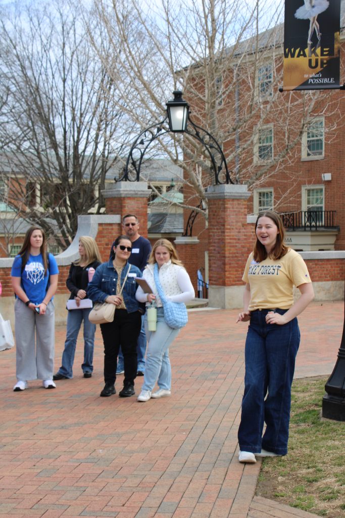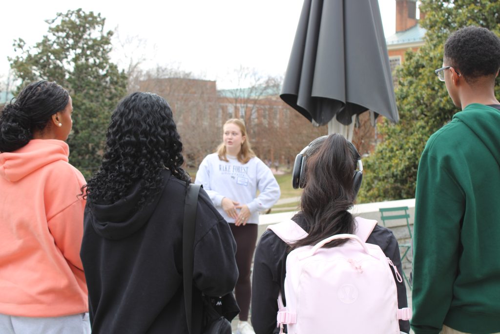 We began our day with a mock admissions committee session led by Assistant Dean of Admissions, Riley Hall, examining three example college applications and deliberating as a group in order to better understand the evaluation process. Then, we were delighted to invite Cesar Grisales from the Office of Personal and Career Development, Davita DesRoches from the CLASS Office, Monique Gore from the Intercultural Center, and Moriah Gendy from the Women’s Center to present on what makes the Wake Forest advantage so unique.