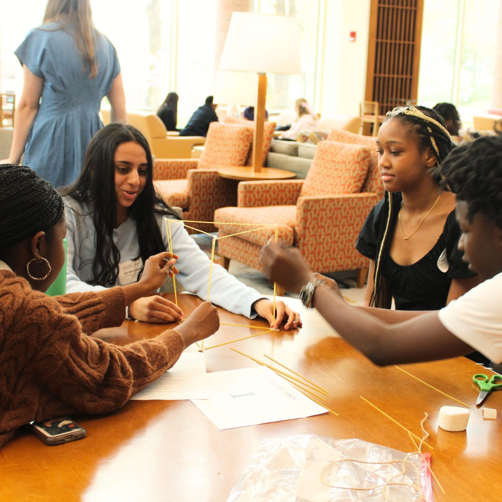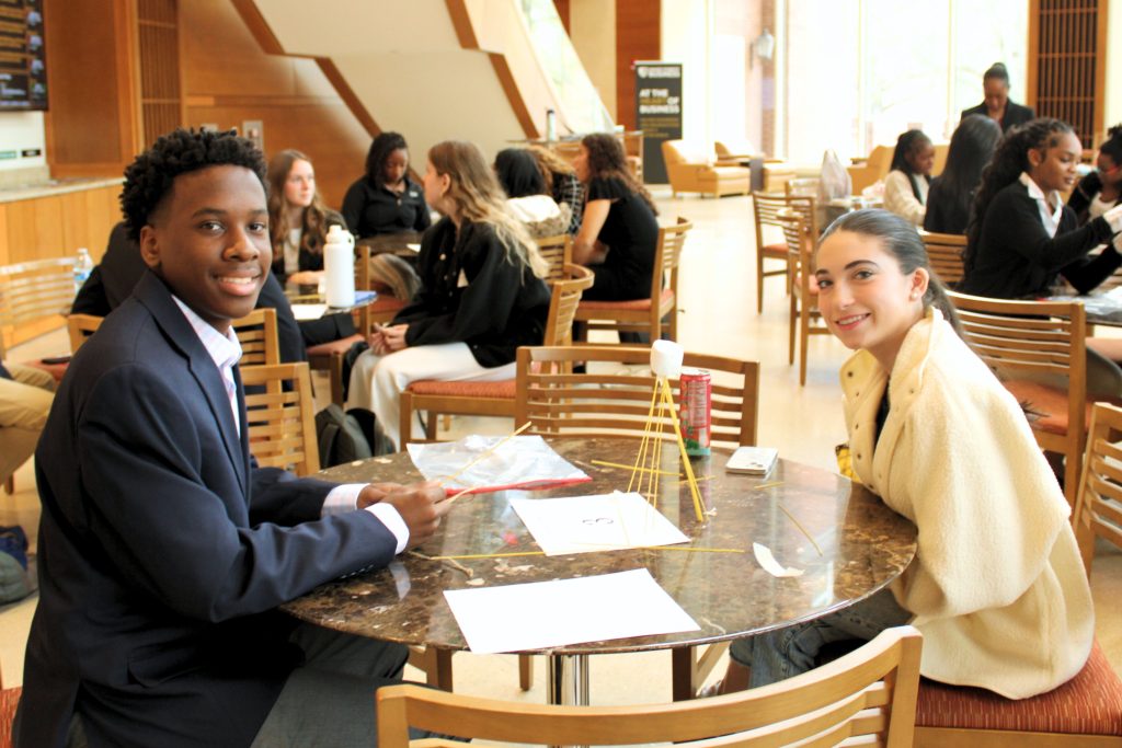 We began our day by breaking up into groups for a classic team-building icebreaker to learn the value of rapid prototyping, collaboration, and identifying hidden assumptions in project management. Groups competed to build the tallest freestanding structure using uncooked spaghetti, marshmallows, and a limited amount of tape and string.