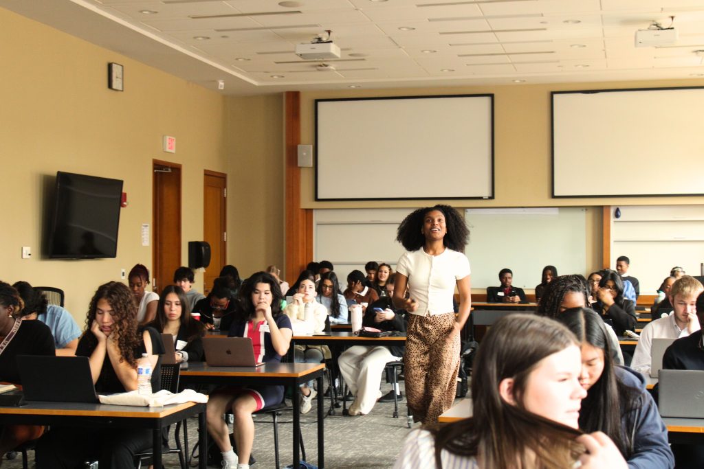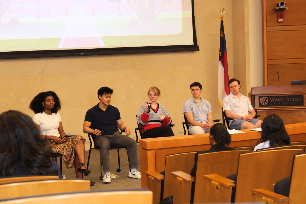 Diving into the main content for the day, Scholars heard an overview of what “business” really entails, presented by Cheryl Rotyliano, the Senior Associate Director of Market Readiness & Employment at Wake Forest. We learned from Whitney Millhouse from Undergraduate Integrative Student Services all about the application process to join the B-school here at Wake, which interested undergraduate students complete during their freshman year.
